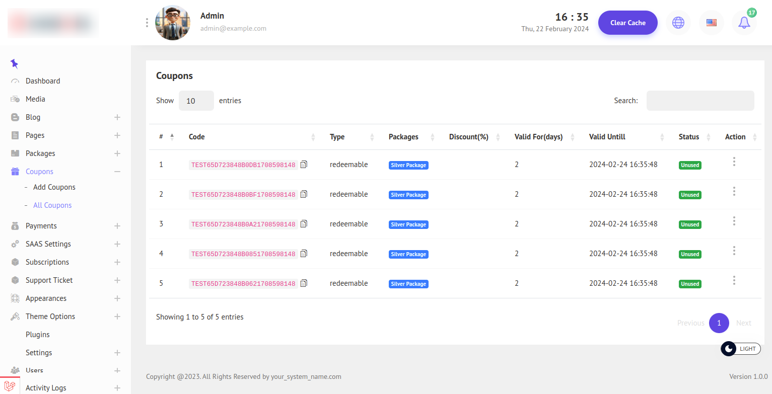 3. You can update and delete coupons by clicking the Edit and Delete buttons from the action column