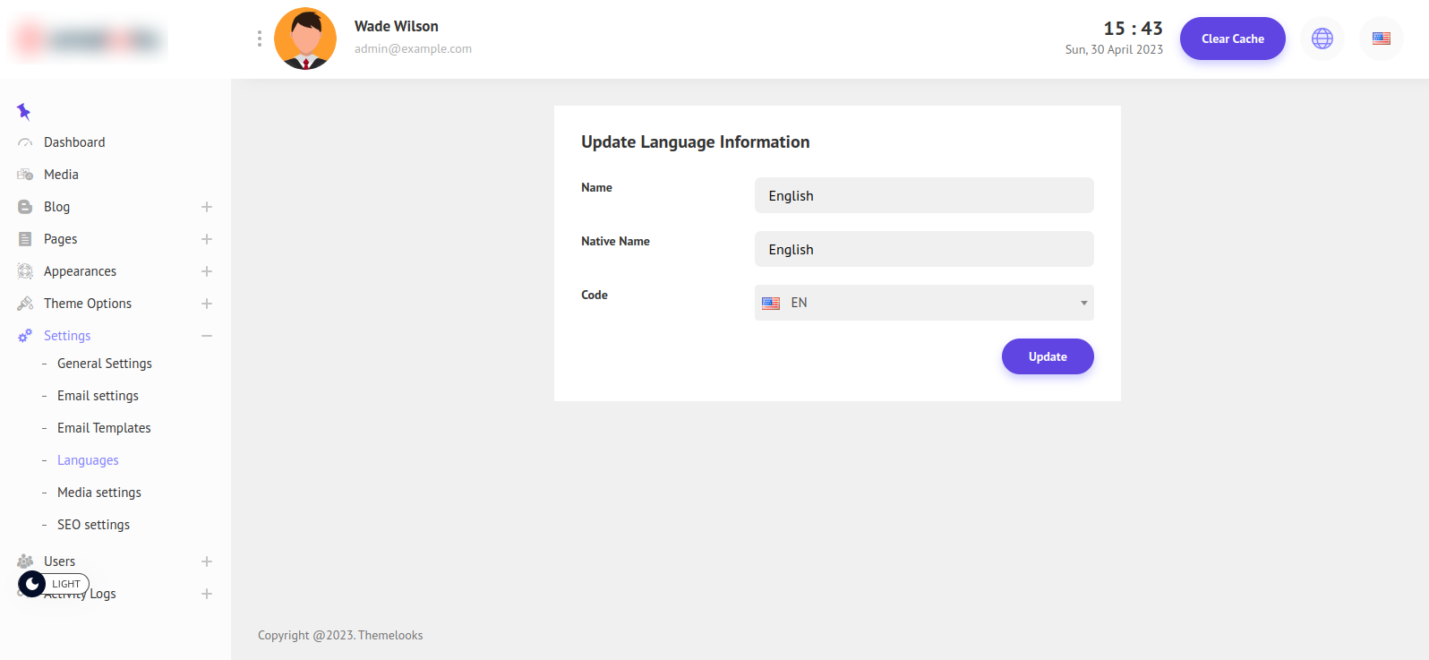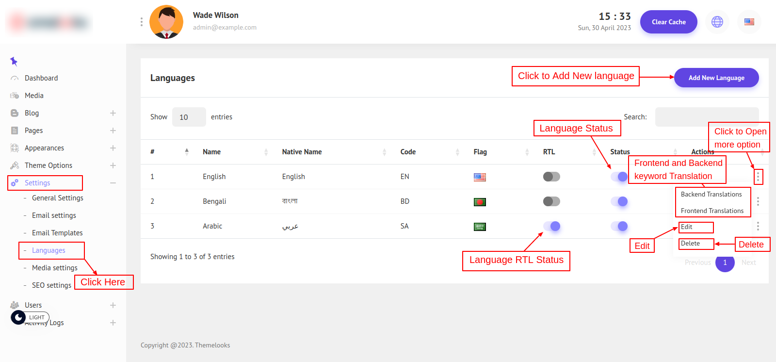 To Edit a Language Click The Edit from the language list Action options. It will redirect you to the edit language page.