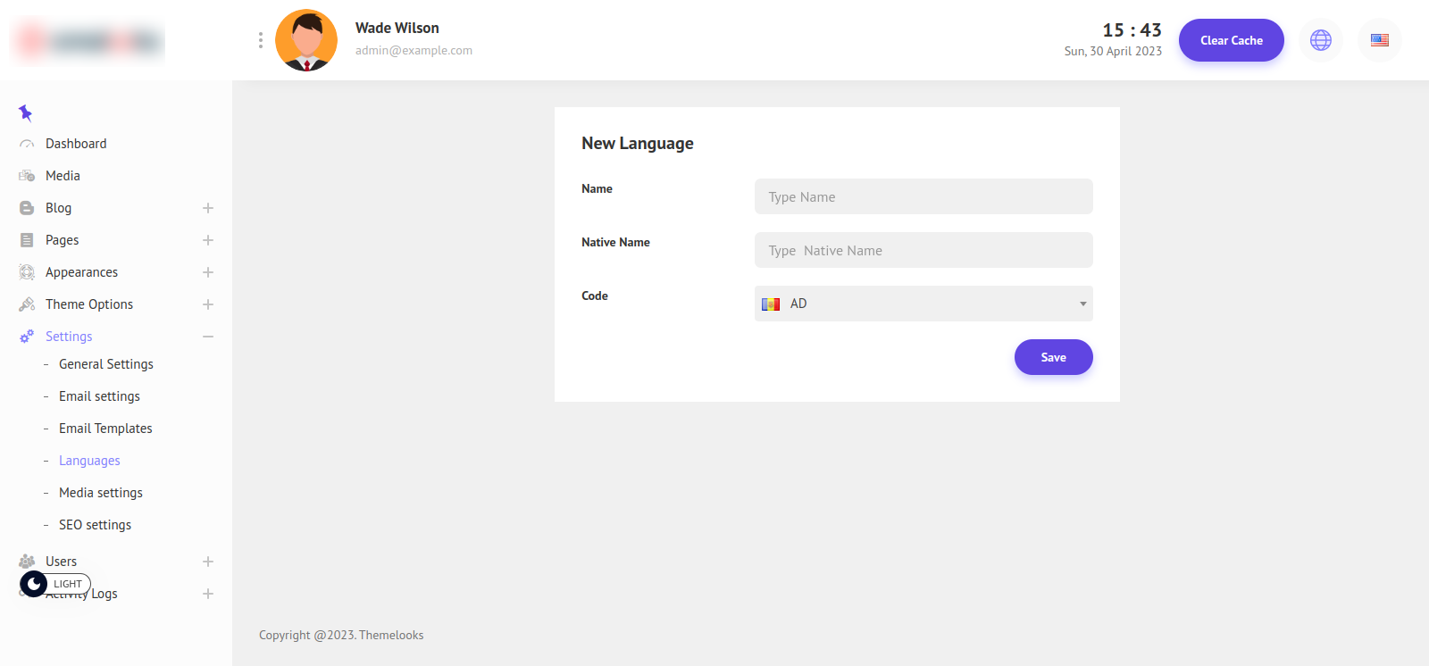 To Add a New Language Click The Add New Language Button.