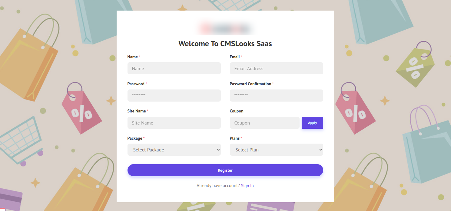 1. On the home page of your system, customers will see a "Sign Up " button. After clicking the button customers will be redirected to the registration page.